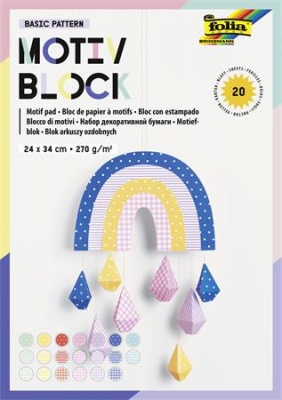 Dekorkarton, 2 oldalas, 24x34 cm, 270 g, 20 lap, FOLIA "Basic Rainbow", 20 különböző minta