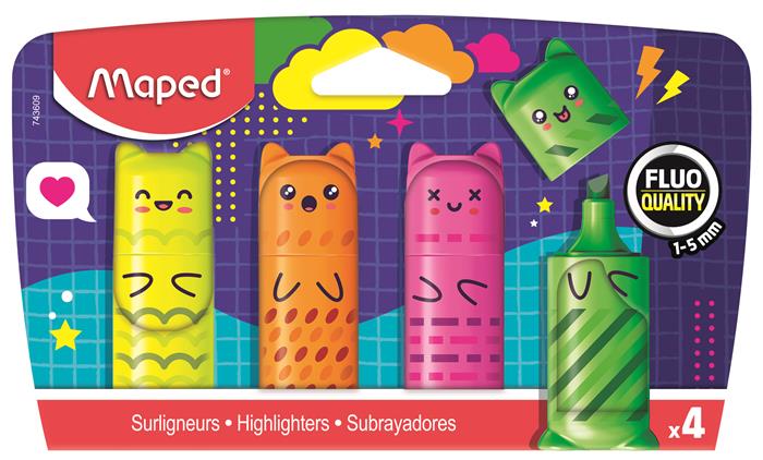 Szövegkiemelő készlet, 1-5 mm, MAPED „Fluo Peps Mini Kawaii”, 4 különböző szín