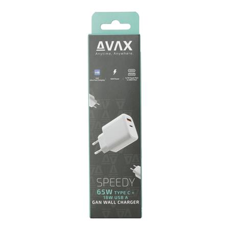 Hálózati töltő, GaN, USB-A + USB-C, AVAX "CH360 Speedy", fehér